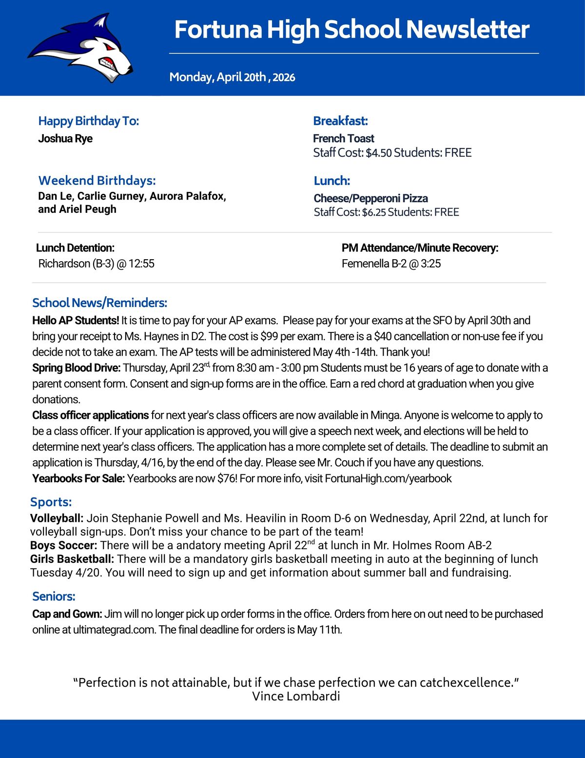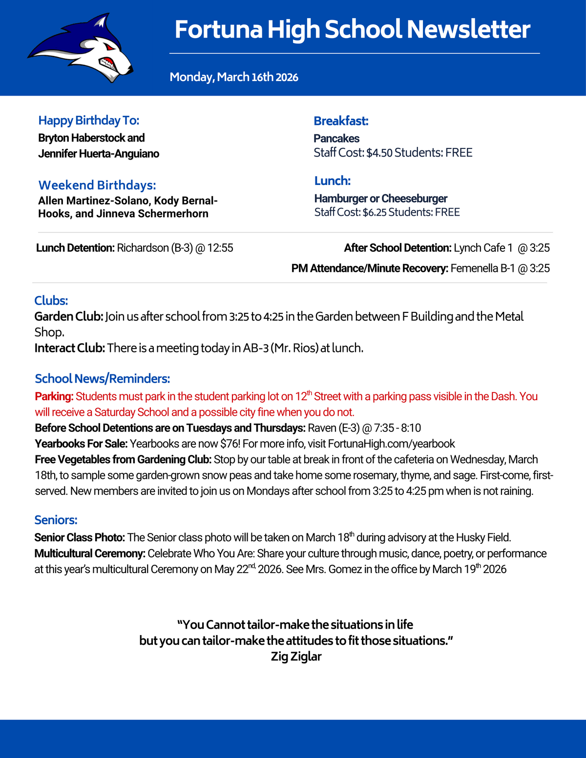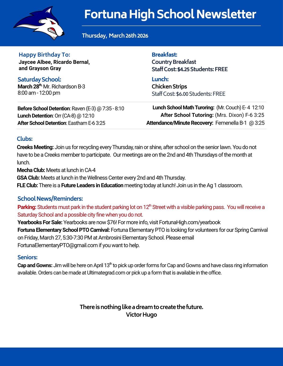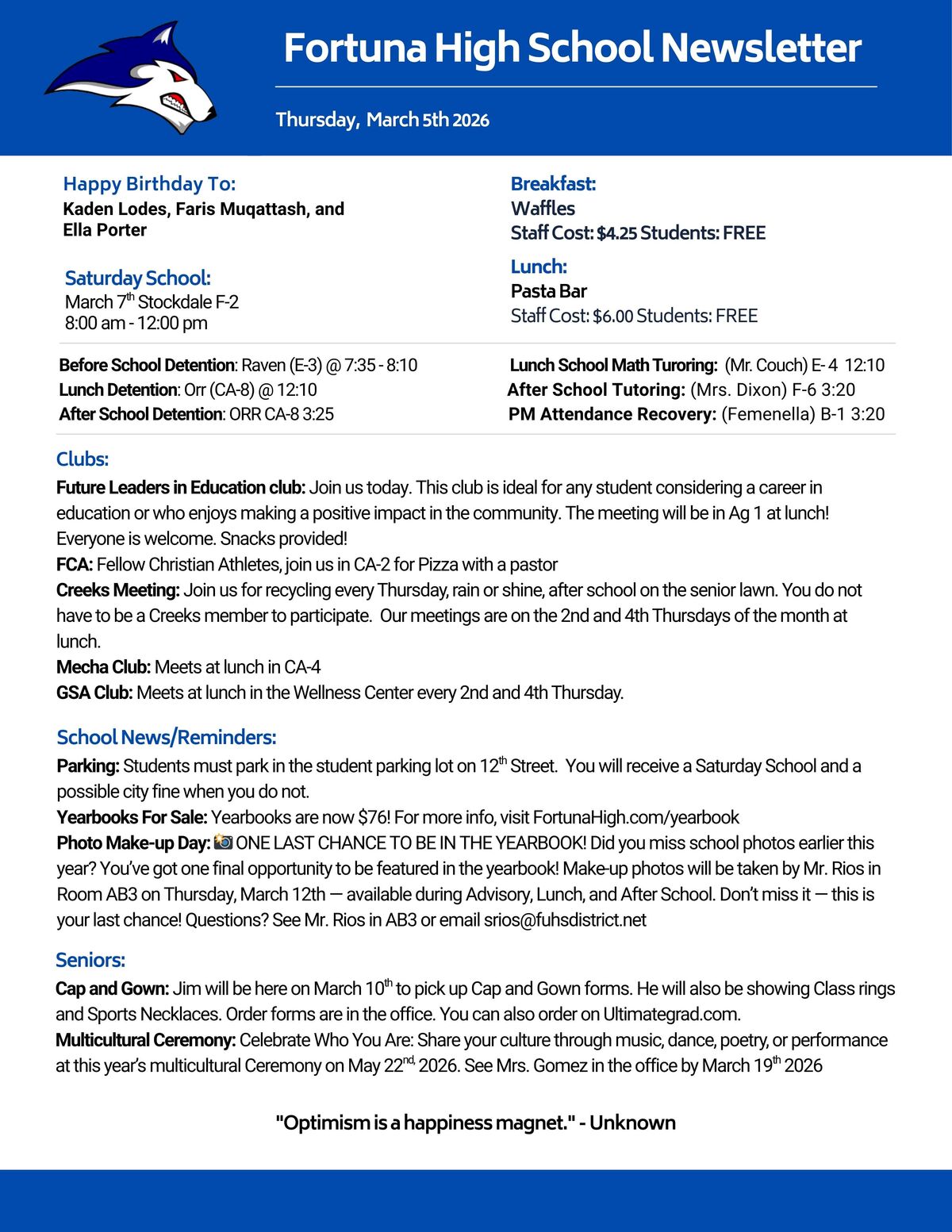 We are proud to serve our community by providing a supportive, engaging, and academically challenging environment where every student can grow, discover their potential, and prepare for a bright future. Our commitment to excellence, strong partnerships with families, and rich educational opportunities help ensure all students thrive—both in and beyond the classroom. Let’s make it a great year together!