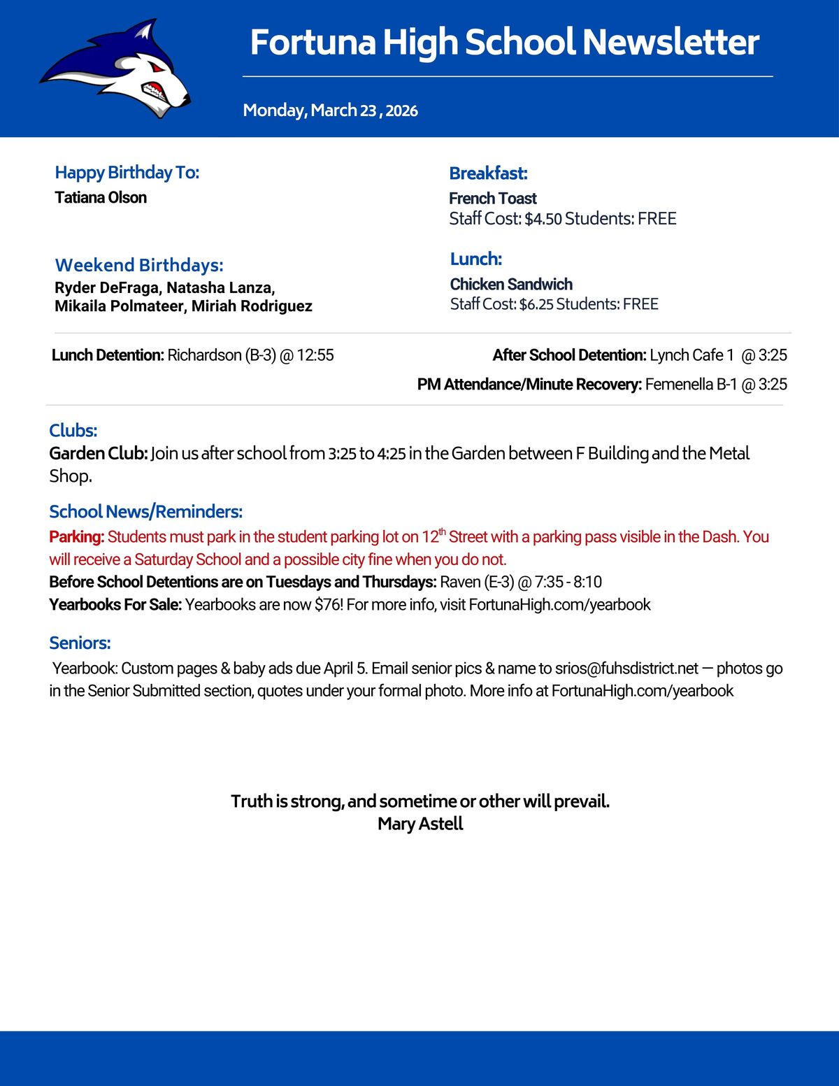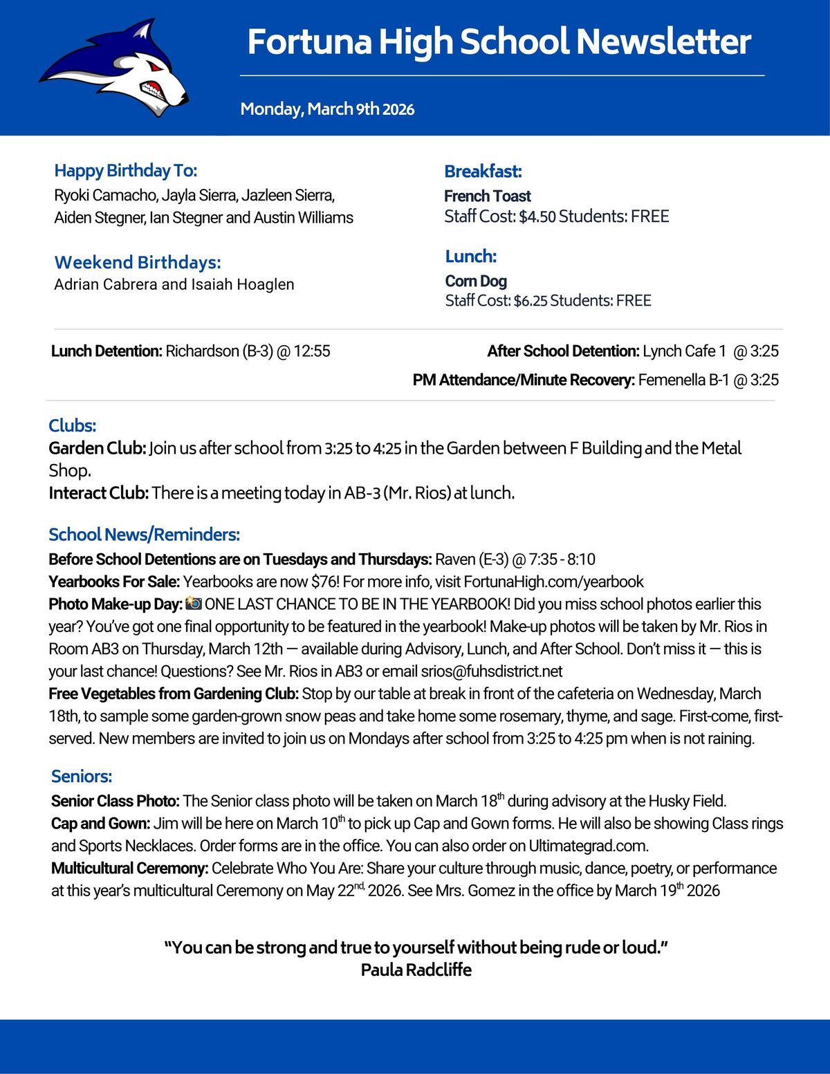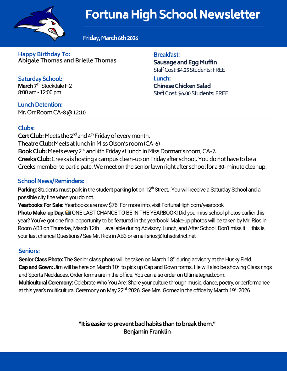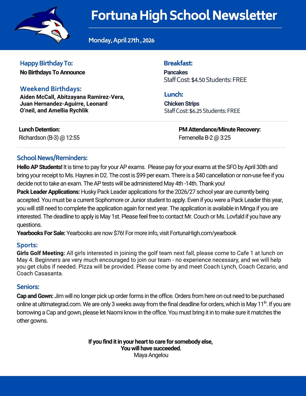We are proud to serve our community by providing a supportive, engaging, and academically challenging environment where every student can grow, discover their potential, and prepare for a bright future. Our commitment to excellence, strong partnerships with families, and rich educational opportunities help ensure all students thrive—both in and beyond the classroom. Let’s make it a great year together!