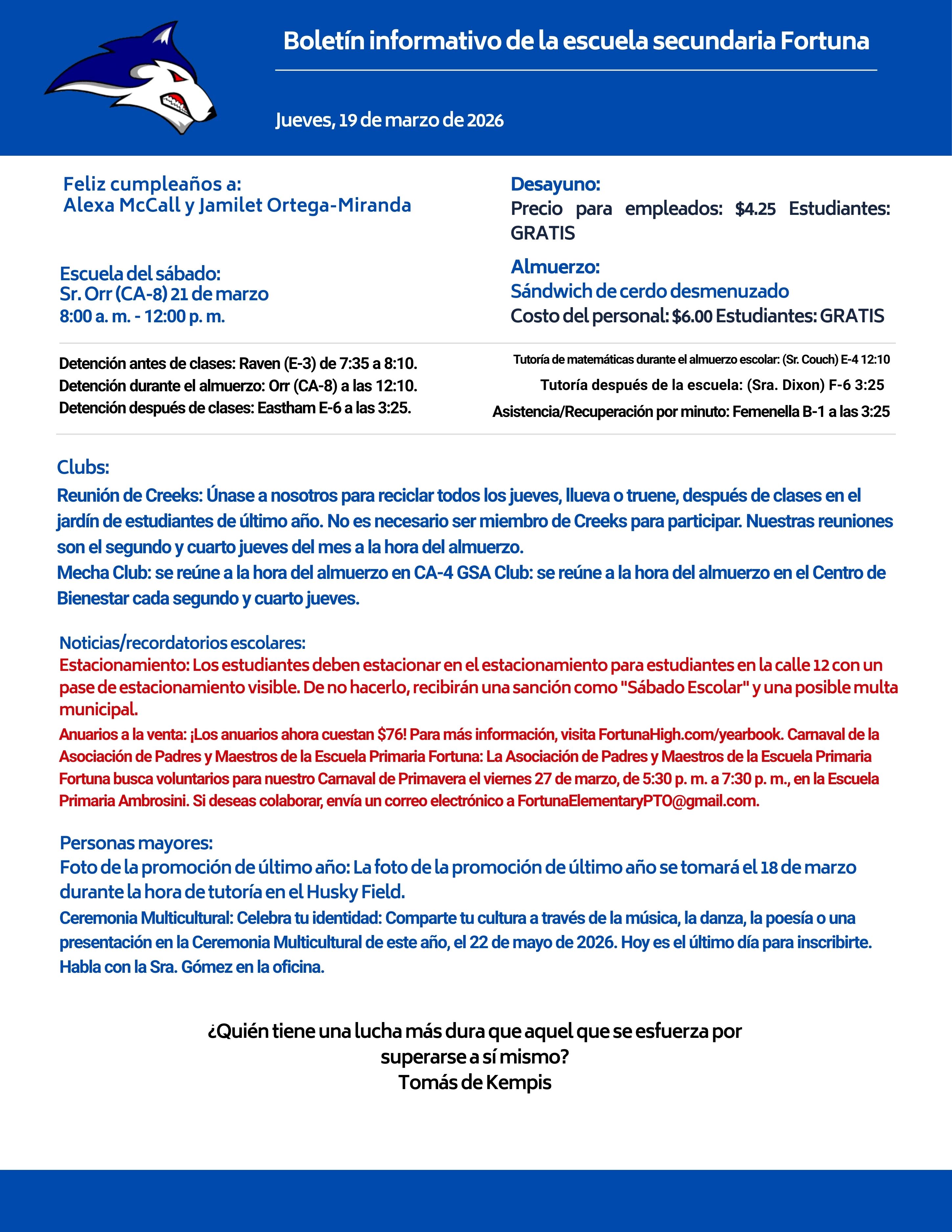 Bulletin 03/19/2026