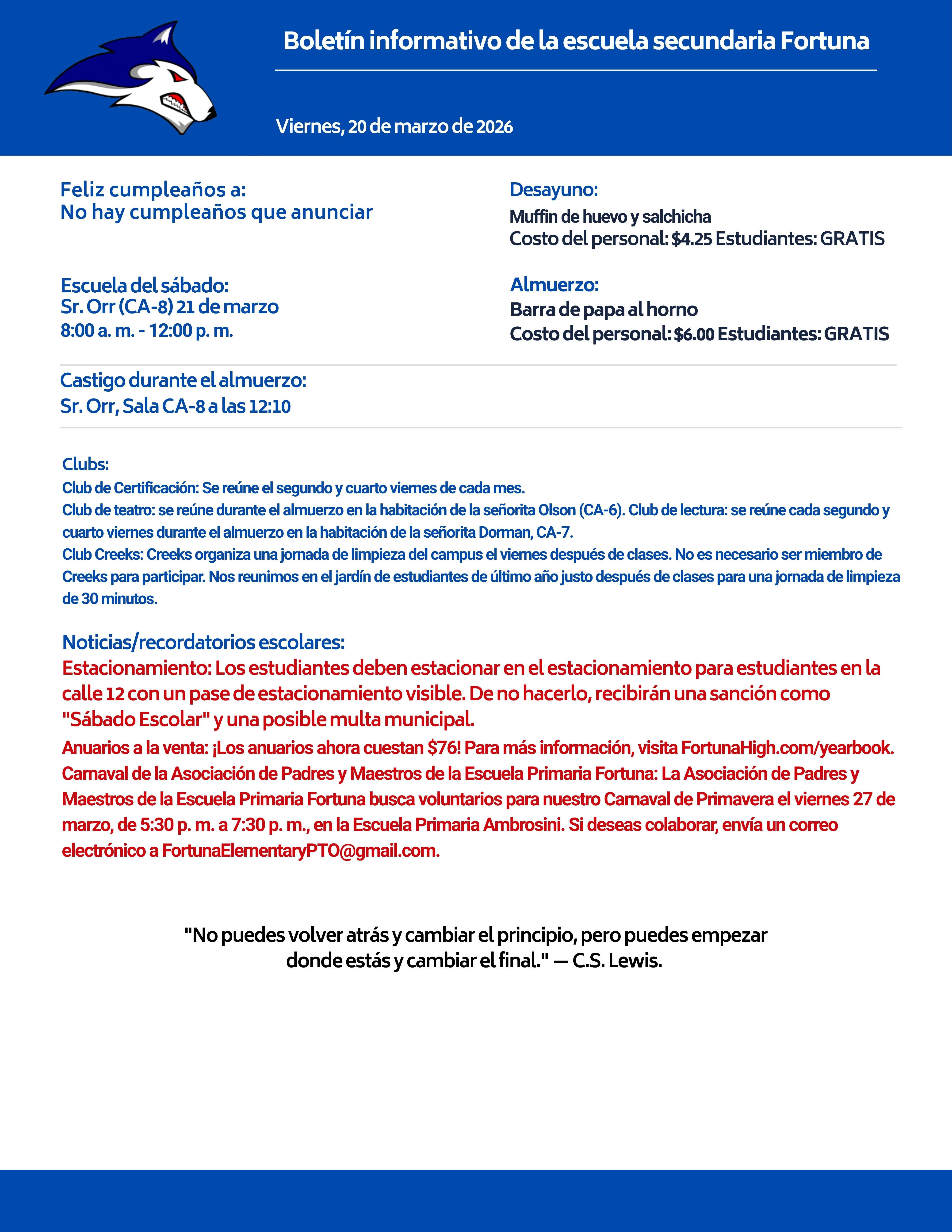 Bulletin 03/20/2026