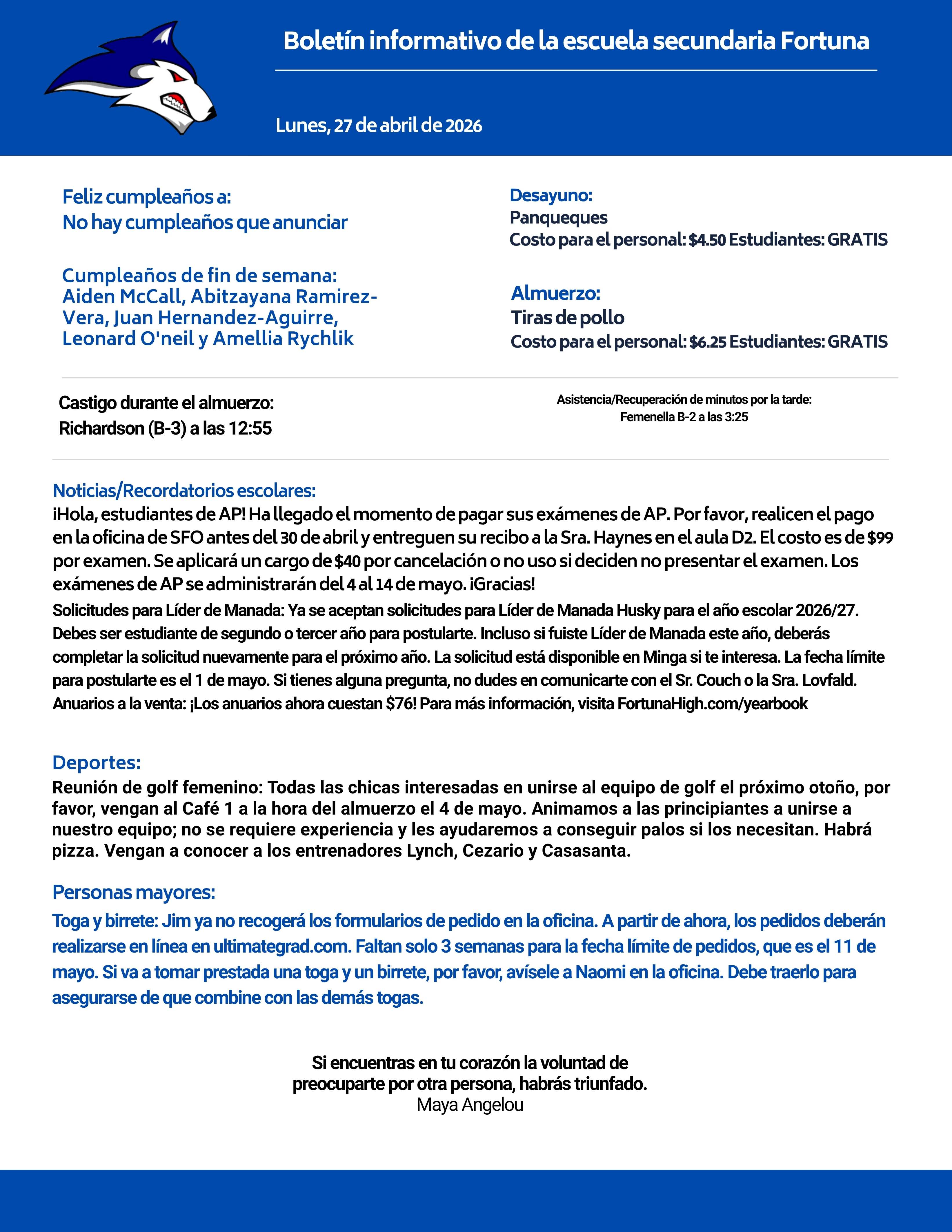 Bulletin 04/27/2026